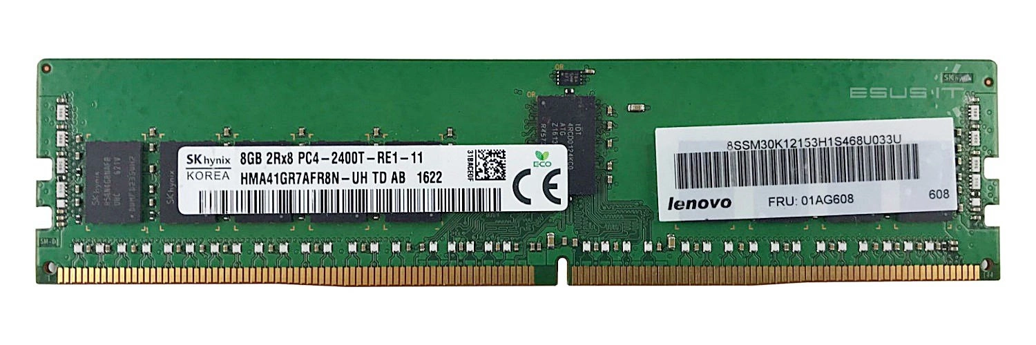 - Sestava pamětí RAM 8 GB která je složena z 1x 8GB 2Rx8 PC4-19200 DDR4 2400MHz 1.2 V ECC REGISTERED | LENOVO P/N: 01AG608