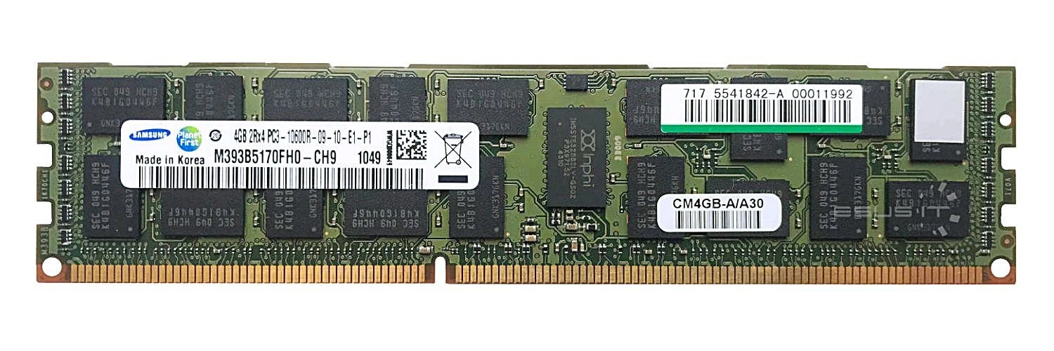 - Sestava pamětí RAM 4 GB která je složena z 1x 4GB PC3-10600 DDR3 1333MHz 1.5 V ECC REGISTERED | M393B5170FH0-CH9