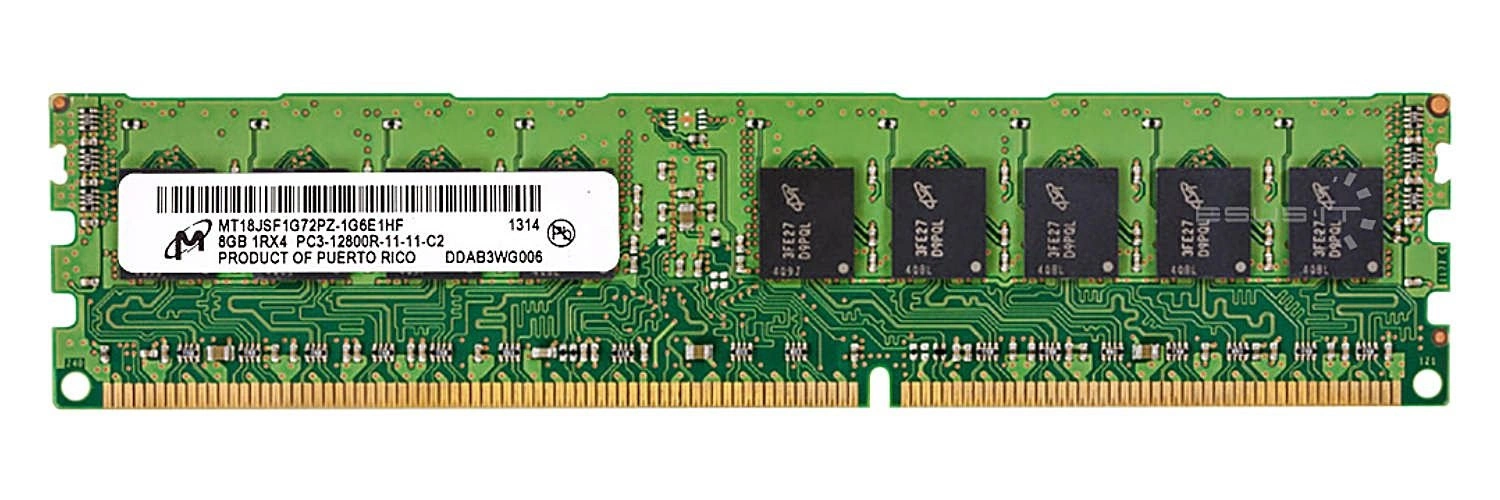 - Sestava pamětí RAM 8 GB která je složena z 1x 8GB PC3-12800 DDR3 1600MHz 1.5 V ECC REGISTERED | MT18JSF1G72PZ-1G6