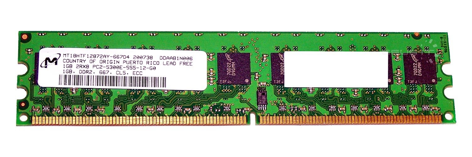 - Sestava pamětí RAM 1 GB která je složena z 1x 1GB PC2-5300 DDR2 667MHz 1.8 V ECC UNBUFFERED | MT18HTF12872AY-667D4