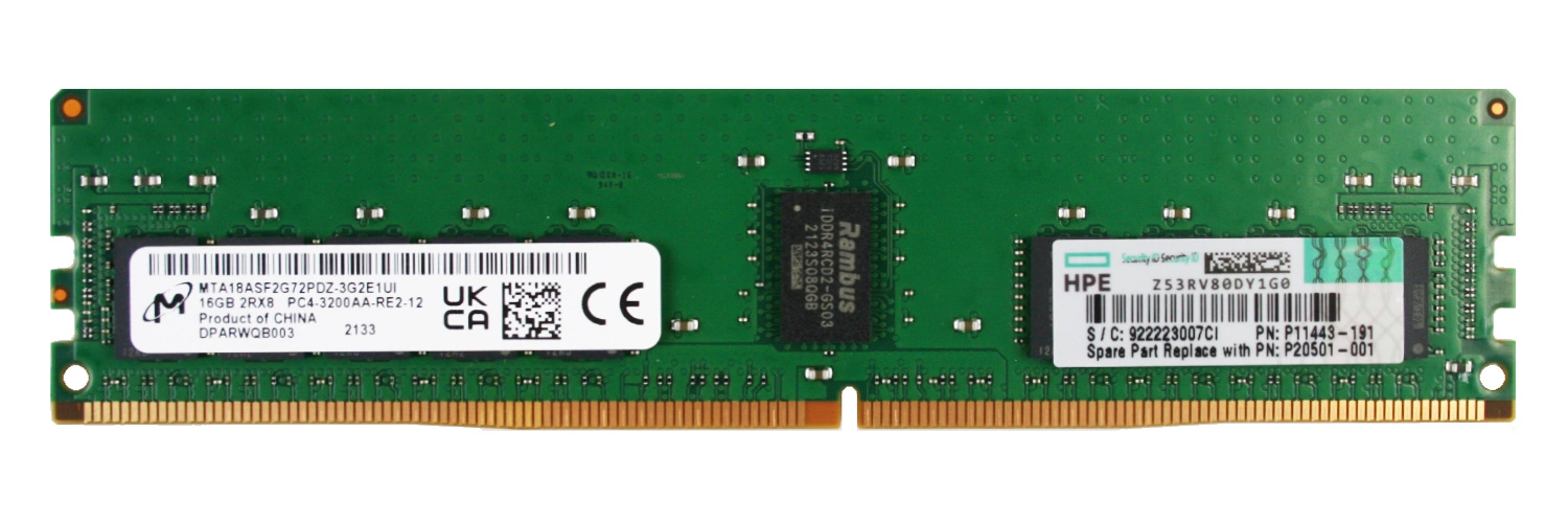 - Sestava pamětí RAM 16GB která je složena z 1x 16GB 2Rx8 PC4-25600 DDR4 3200MHz 1.2 V ECC REGISTERED | MTA18ASF2G72PDZ-3G2H
