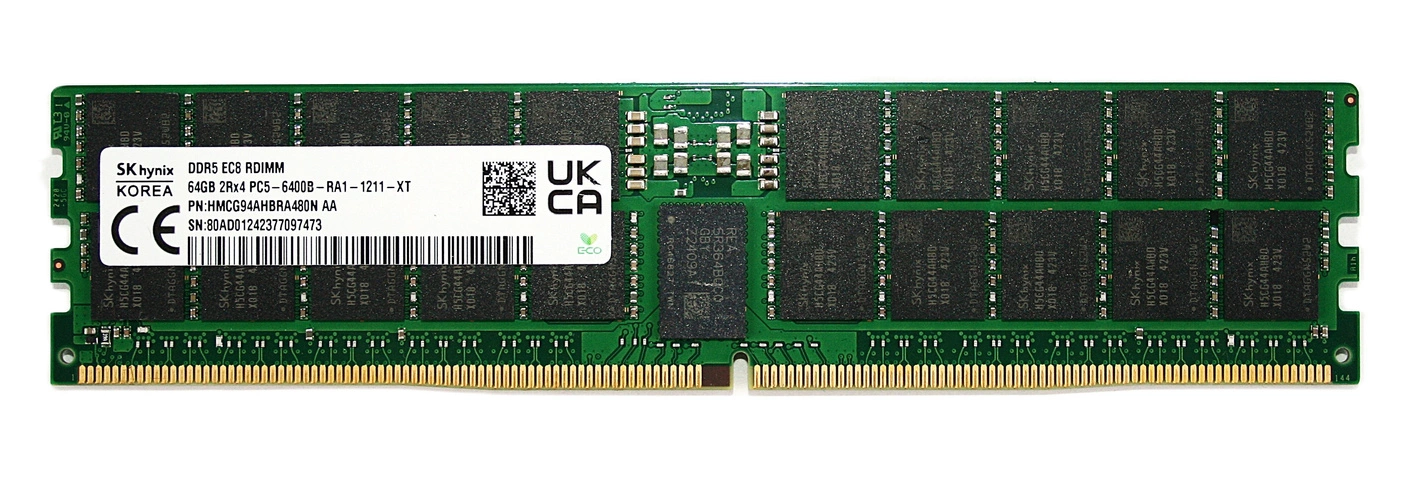 • Sestava pamětí RAM 64 GB která je složena z 1x 64GB ECC REGISTERED DDR5 2Rx4 6400MHz PC5-51200 RDIMM | HMCG94AHBRA480N