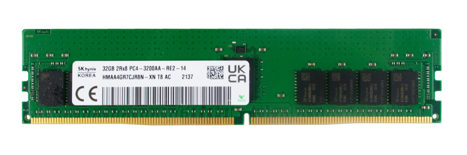 - Sestava pamětí RAM 32 GB která je složena z 1x 32GB 2Rx8 PC4-25600 DDR4 3200MHz 1.2 V ECC REGISTERED | HMAA4GR7DJR8N-XN