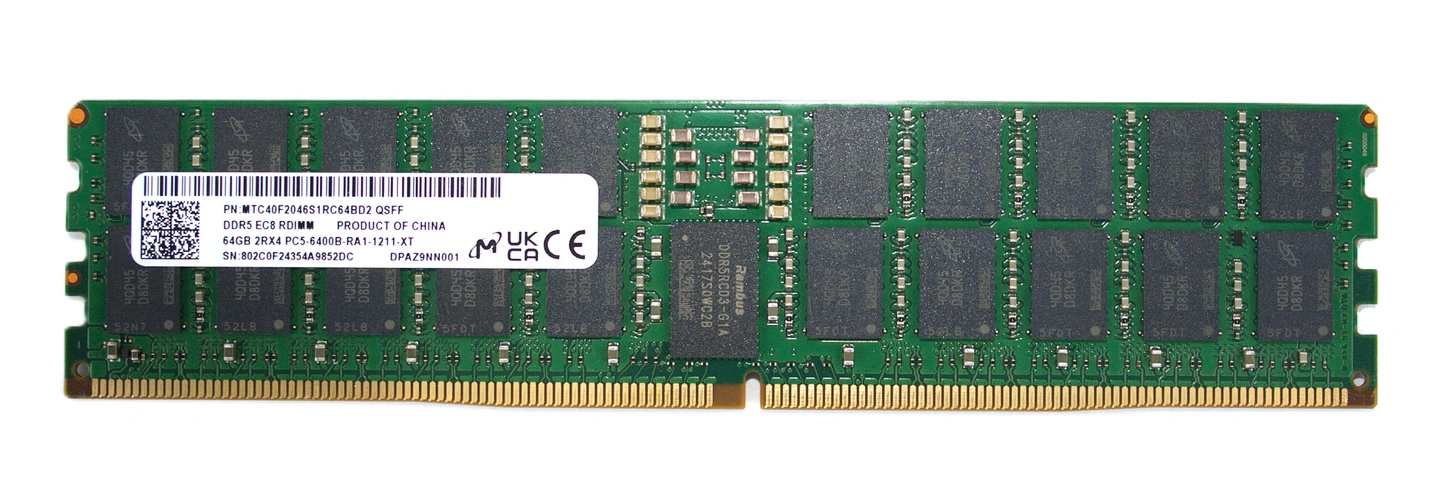 Paměť RAM 1x 64GB Micron ECC REGISTERED DDR5 2Rx4 6400MHz PC5-51200 RDIMM | MTC40F2046S1RC64BD2