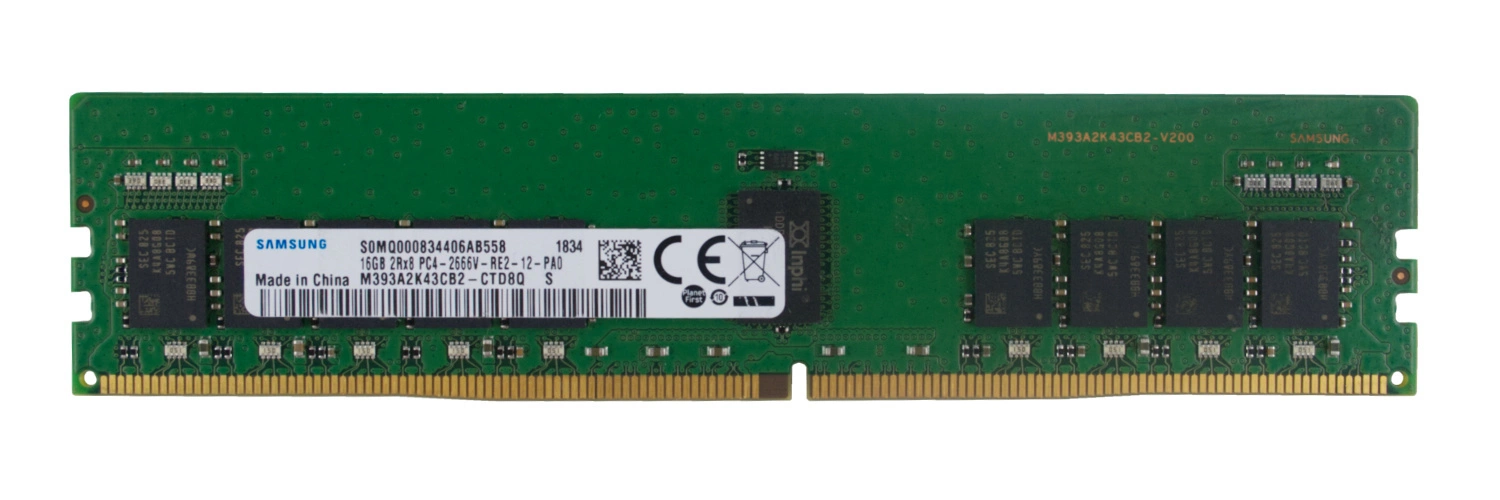 - Sestava pamětí RAM 16 GB která je složena z 1x 16GB 2Rx8 PC4-21300 DDR4 2666MHz 1.2 V ECC REGISTERED | M393A2K43CB2-CTD