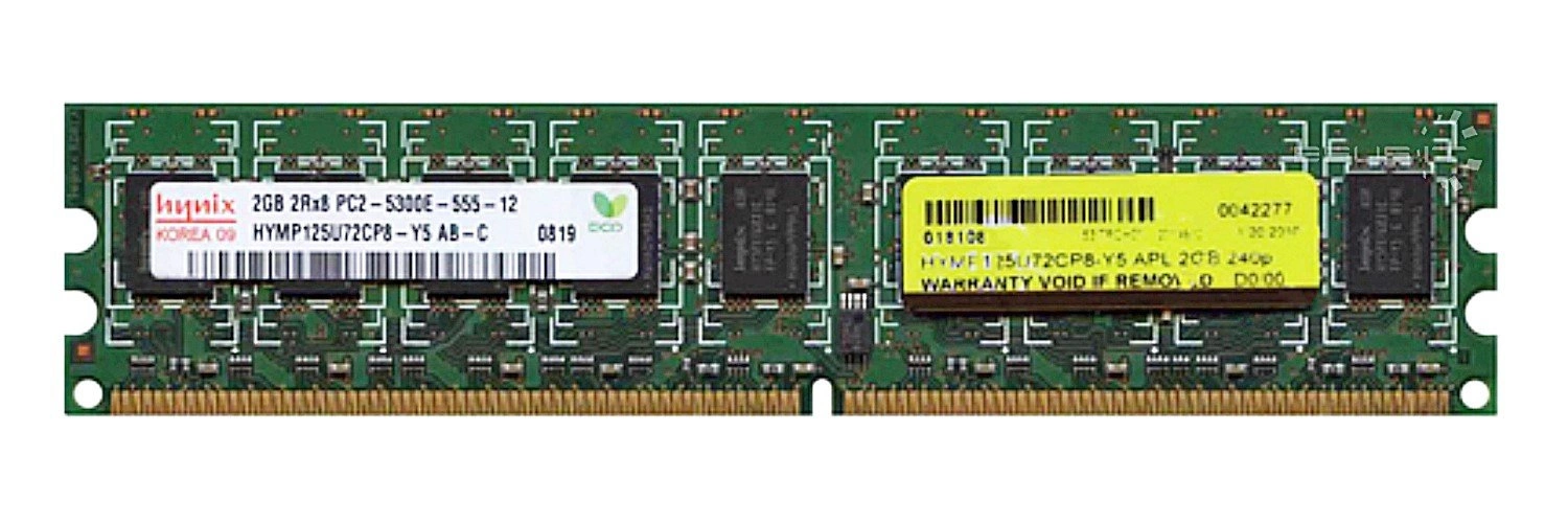 • Sestava pamětí RAM 2 GB která je složena z 1x 2GB PC2-5300 DDR2 667MHz 1.8 V ECC UNBUFFERED | HYMP125U72CP8-Y5