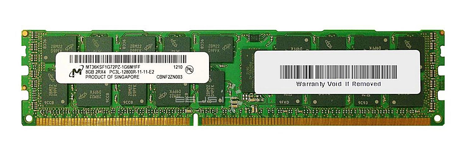 - Sestava pamětí RAM 8 GB která je složena z 1x 8GB 2Rx4 PC3-12800 DDR3 1600MHz 1.35 / 1.5 V ECC REGISTERED | MT36KSF1G72PZ-1G6