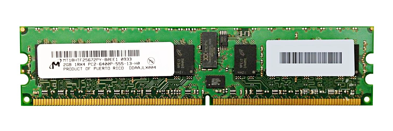 - Sestava pamětí RAM 2 GB která je složena z 1x 2GB PC2-6400 DDR2 800MHz 1.8 V ECC REGISTERED | MT18HTF25672PY-80E