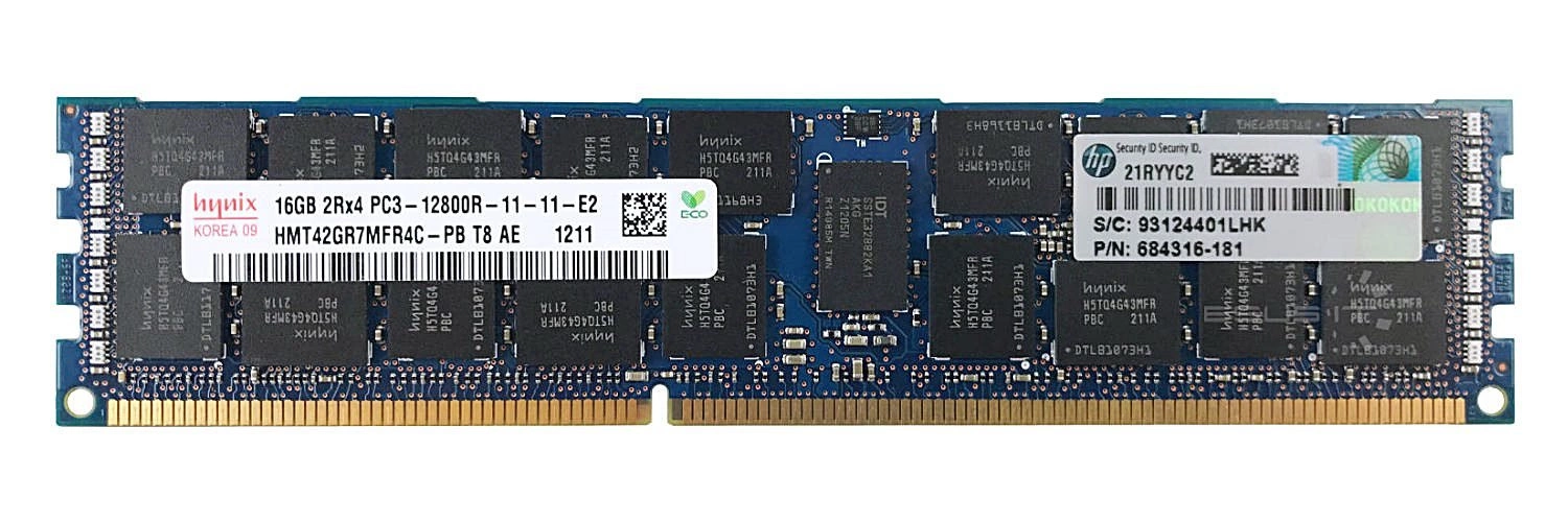 - Sestava pamětí RAM 16 GB která je složena z 1x 16GB 2Rx4 PC3-12800 DDR3 1600MHz 1.5 V ECC REGISTERED | HP P/N: 672633-B21 | 672612-181 | 687465-001
