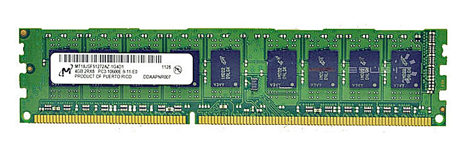 - Sestava pamětí RAM 4 GB která je složena z 1x 4GB PC3-10600 DDR3 1333MHz 1.5 V ECC UNBUFFERED | MT18JSF51272AZ-1G4