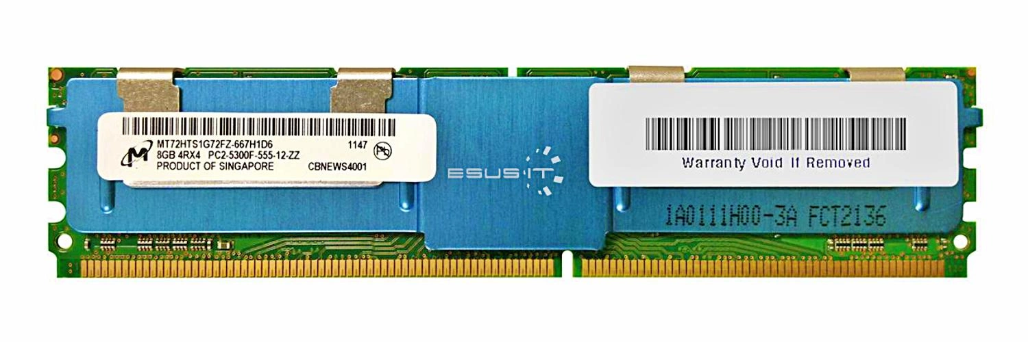 - Sestava pamětí RAM 8 GB která je složena z 1x 8GB PC2-5300 DDR2 667MHz 1.8 V ECC FULLY BUFFERED | MT72HTS1G72FZ-667H1D6