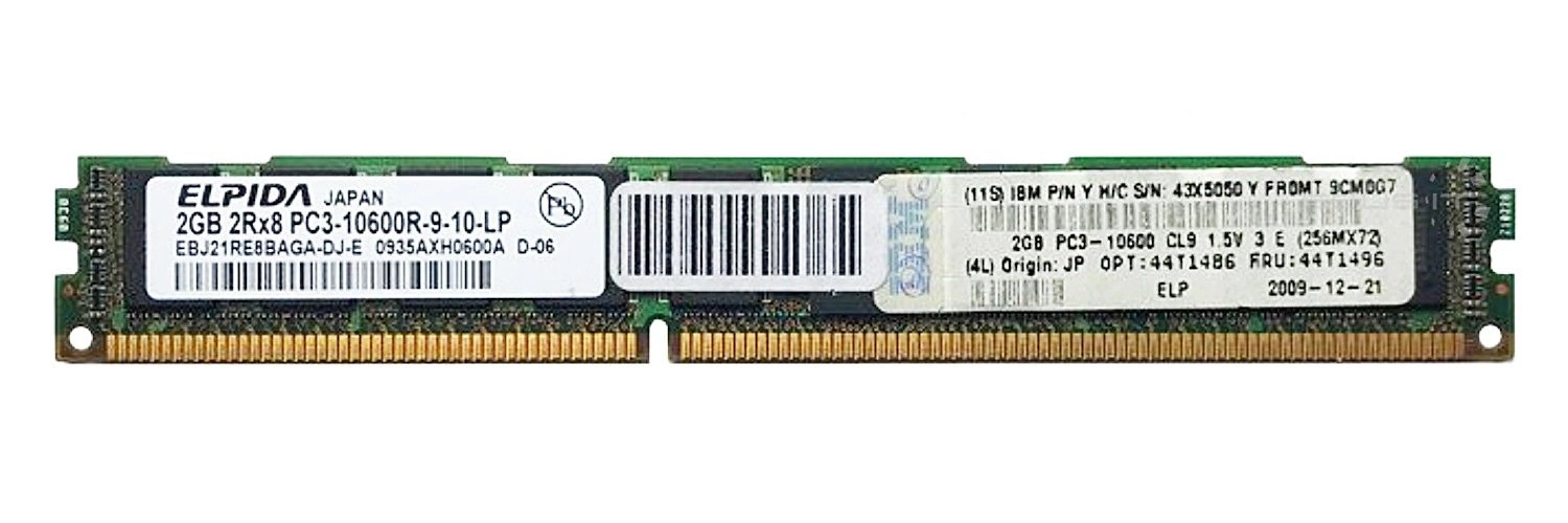 - Sestava pamětí RAM 2 GB která je složena z 1x 2GB PC3-10600 DDR3 1333MHz 1.5 V ECC REGISTERED | IBM P/N: 43X5052 | FRU: 44T1496