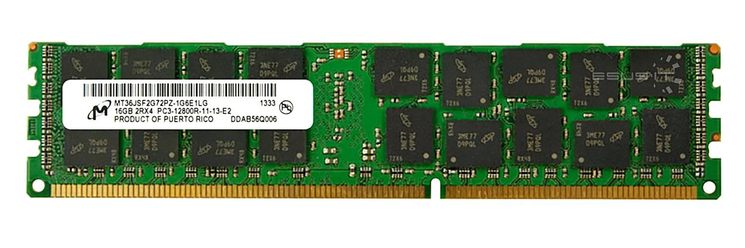 - Sestava pamětí RAM 16 GB která je složena z 1x 16GB PC3-12800 DDR3 1600MHz 1.5 V ECC REGISTERED | MT36JSF2G72PZ-1G6E1HF