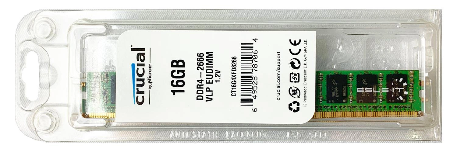 - Sestava pamětí RAM 16 GB která je složena z 1x 16GB 2Rx8 PC4-21300 DDR4 2666MHz 1.2 V ECC UNBUFFERED | CT16G4XFD8266
