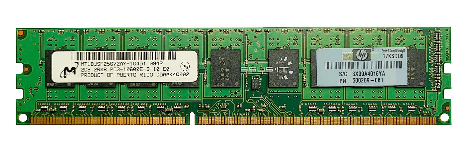- Sestava pamětí RAM 2 GB která je složena z 1x 2GB 2Rx8 PC3-10600 DDR3 1333MHz 1.5 V ECC UNBUFFERED | MT18JSF25672AY