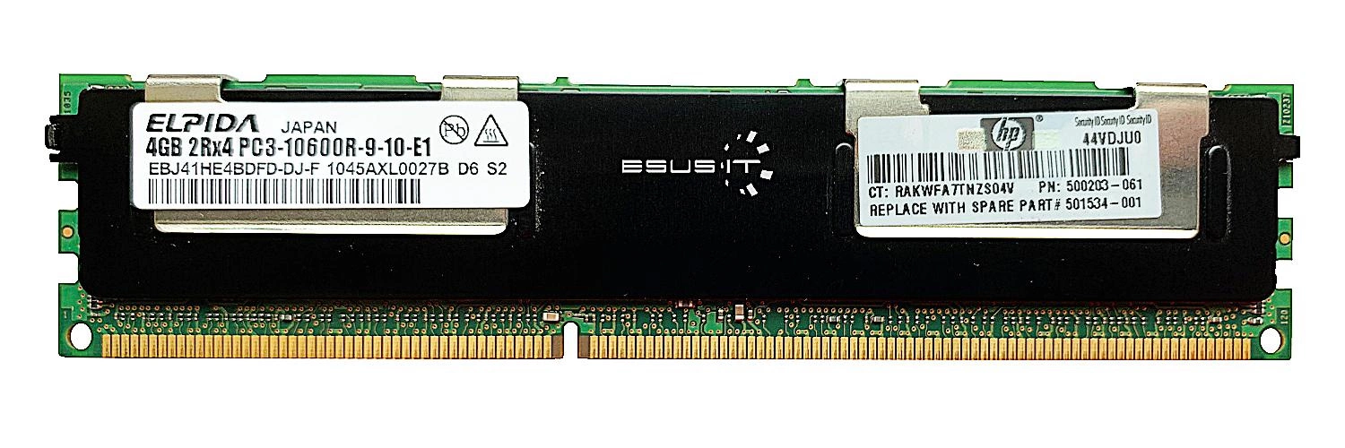 - Sestava pamětí RAM 4 GB která je složena z 1x 4GB 2Rx4 PC3-10600 DDR3 1333MHz 1.5 V ECC REGISTERED | HP P/N: 500658-B21 | 500203-061 | 501534-001