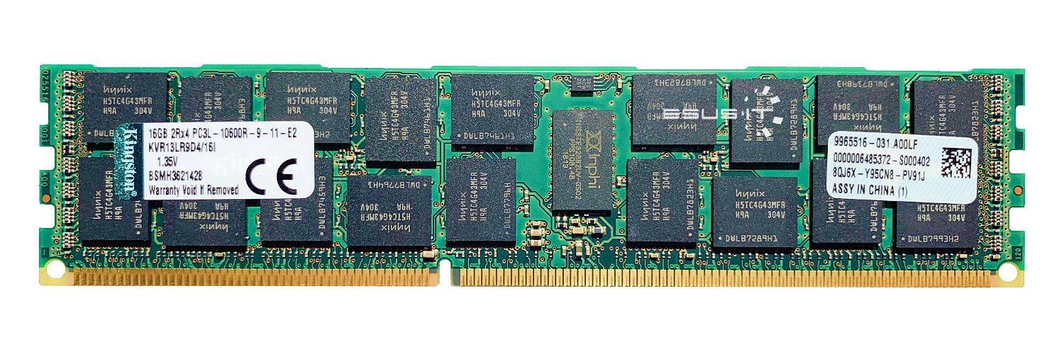 - Sestava pamětí RAM 16 GB která je složena z 1x 16GB 2Rx4 PC3-10600 DDR3 1333MHz 1.35 / 1.5 V ECC REGISTERED | KVR13LR9D4/16I