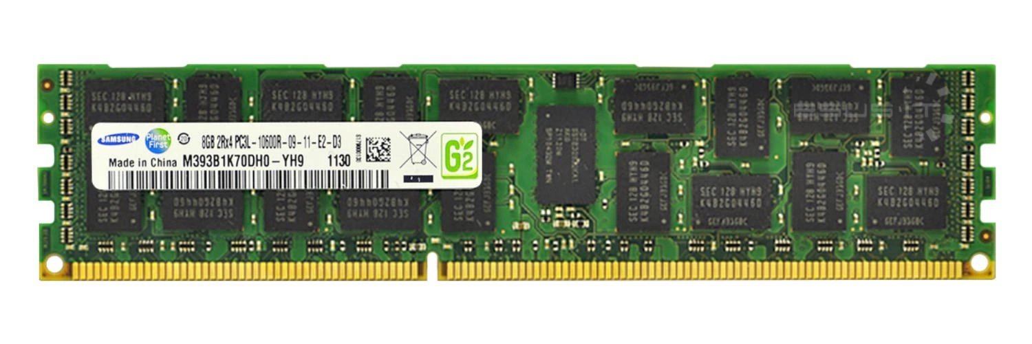• Sestava pamětí RAM 8 GB která je složena z 1x 8GB PC3-10600 DDR3 1333MHz 1.35 / 1.5 V ECC REGISTERED | M393B1K70DH0-YH9Q9