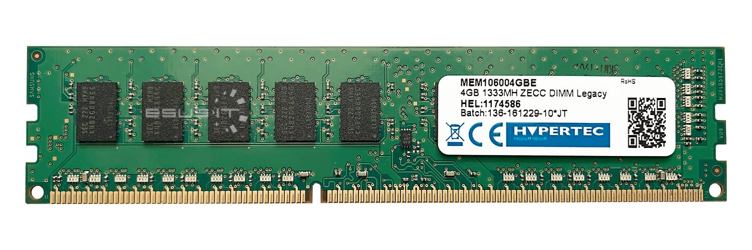 Paměť RAM 1x 4GB HYPERTEC ECC UNBUFFERED DDR3 2Rx8 1333MHz PC3-10600 UDIMM | MEM106004GBE