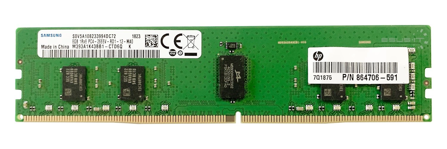 - Sestava pamětí RAM 8 GB která je složena z 1x 8GB PC4-21300 DDR4 2666MHz 1.2 V ECC REGISTERED | M393A1K43BB1-CTD