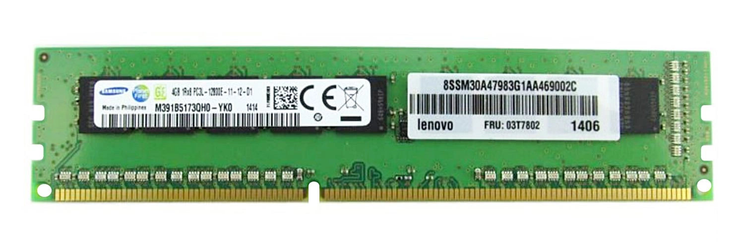 - Sestava pamětí RAM 4 GB která je složena z 1x 4GB PC3-12800 DDR3 1600MHz 1.35 / 1.5 V ECC UNBUFFERED | M391B5173QH0-YK0