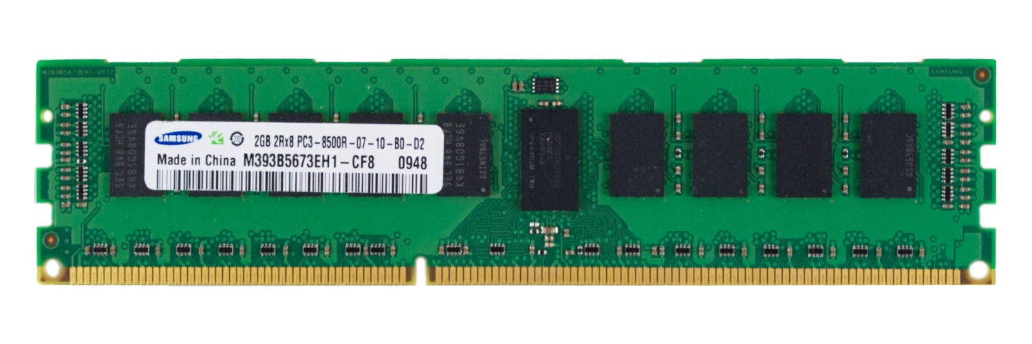 - Sestava pamětí RAM 2 GB která je složena z 1x 2GB PC3-8500 DDR3 1066MHz 1.5 V ECC REGISTERED | M393B5673EH1-CF8
