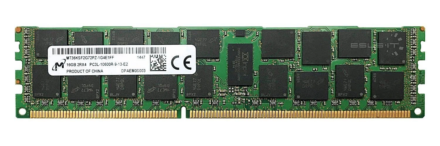 - Sestava pamětí RAM 16 GB která je složena z 1x 16GB PC3-10600 DDR3 1333MHz 1.35 / 1.5 V ECC REGISTERED | MT36KSF2G72PZ-1G4