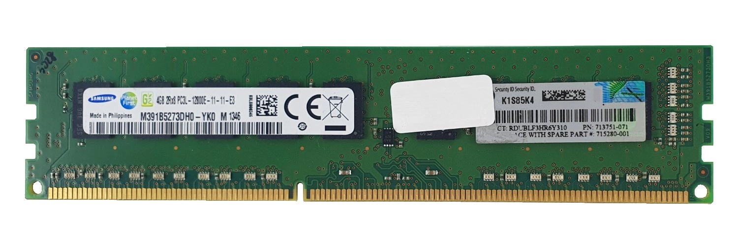 - Sestava pamětí RAM 4 GB která je složena z 1x 4GB 2Rx8 PC3-12800 DDR3 1600MHz 1.35 / 1.5 V ECC UNBUFFERED | M391B5273DH0-CK0