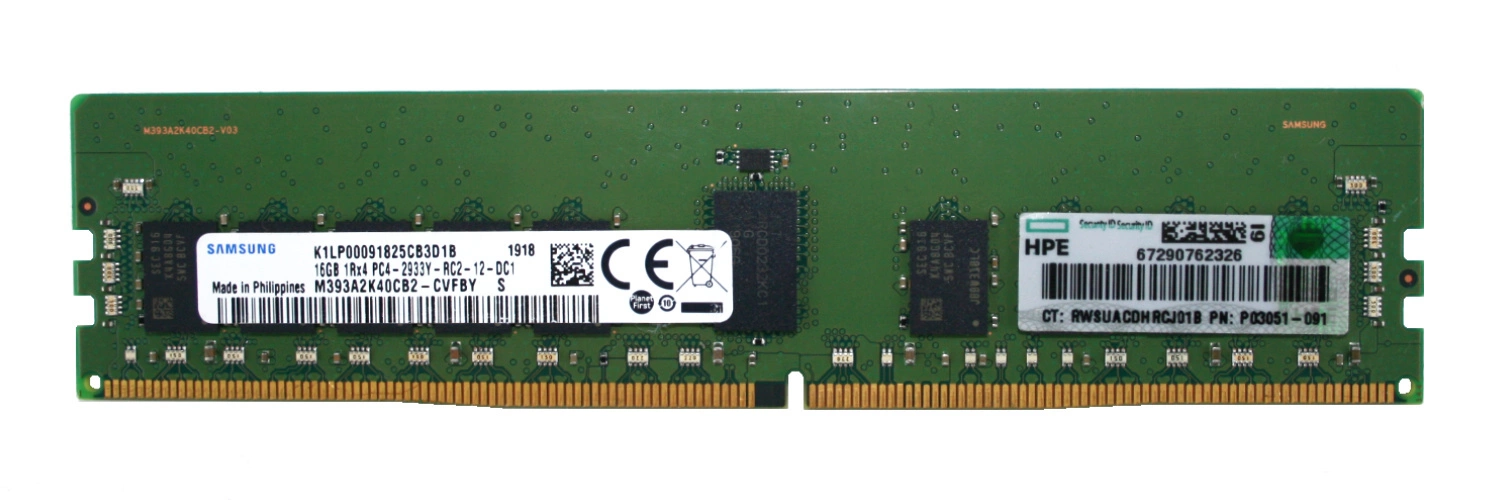 - Sestava pamětí RAM 16 GB která je složena z 1x 16GB 1Rx4 PC4-23400 DDR4 2933MHz 1.2 V ECC REGISTERED | M393A2K40CB2-CVF