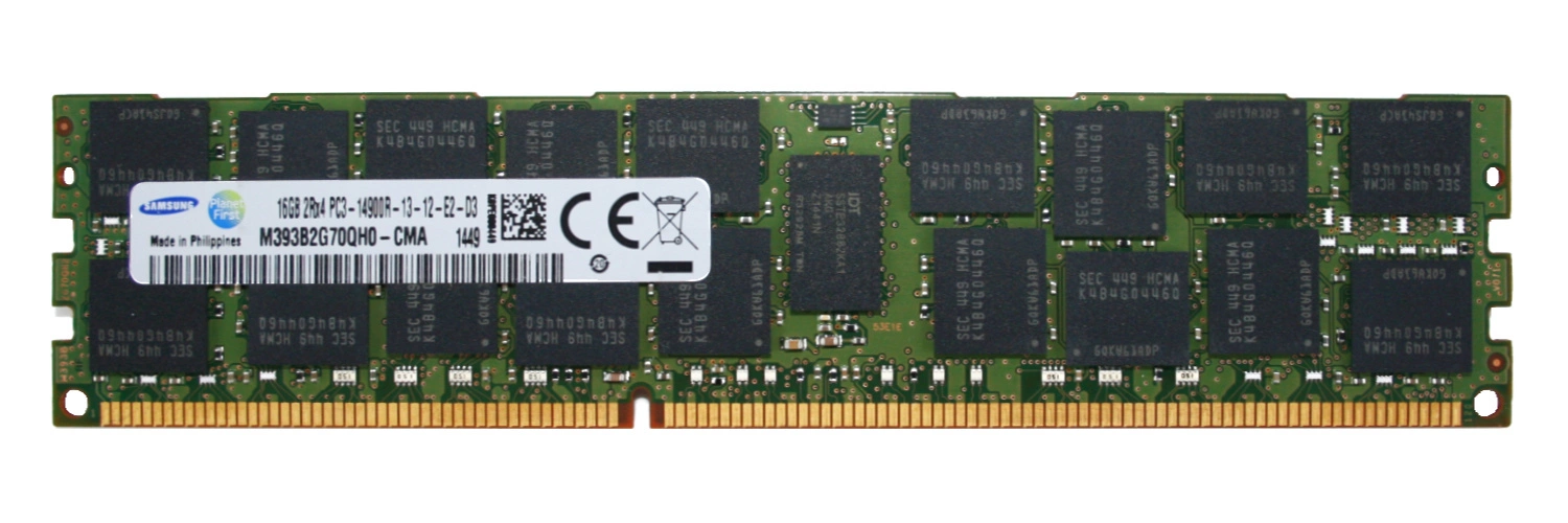 - Sestava pamětí RAM 16 GB která je složena z 1x 16GB PC3-14900 DDR3 1866MHz 1.5 V ECC REGISTERED | M393B2G70QH0-CMA