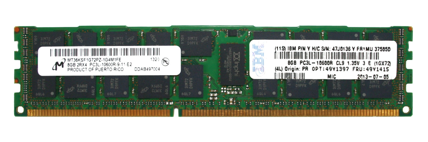 - Sestava pamětí RAM 8 GB která je složena z 1x 8GB PC3-10600 DDR3 1333MHz 1.35 / 1.5 V ECC REGISTERED | MT36KSF1G72PZ-1G4