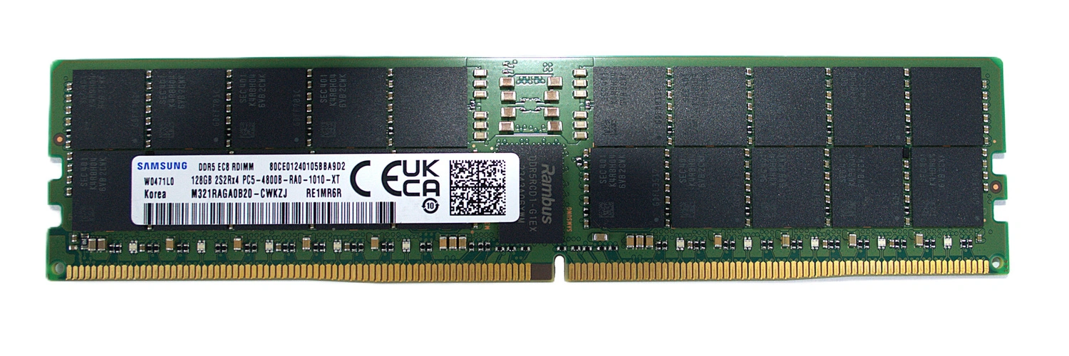 - Sestava pamětí RAM 128 GB která je složena z 1x 128GB 4Rx4 PC5-38400 DDR5 4800MHz 1.1 V ECC REGISTERED | M321RAGA0B20-CWK