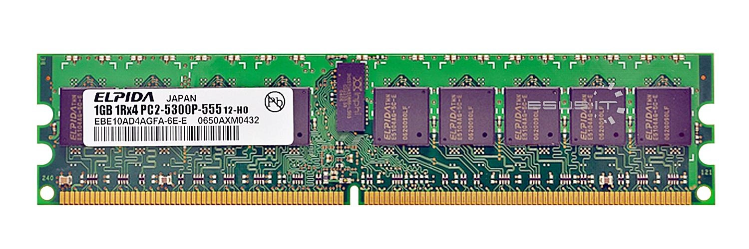 - Sestava pamětí RAM 1 GB která je složena z 1x 1GB PC2-5300 DDR2 667MHz 1.8 V ECC REGISTERED | EBE10AD4AGFA-6E-E